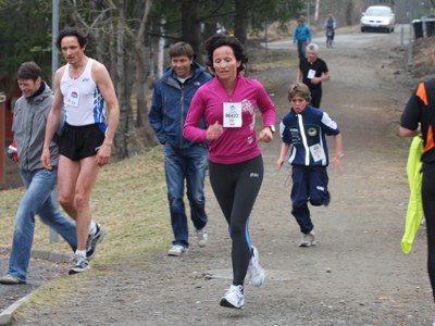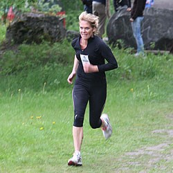 Her er Inger Hjorthol i full gang med sitt løp og tydelig fornøyd.